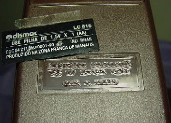 Sob o adesivo indicando que foi produzida na Zon Franca de Manaus, encontra-se uma inscrição gravada na carcaça, razurada, onde estava escrito "Made in Tawian". |
